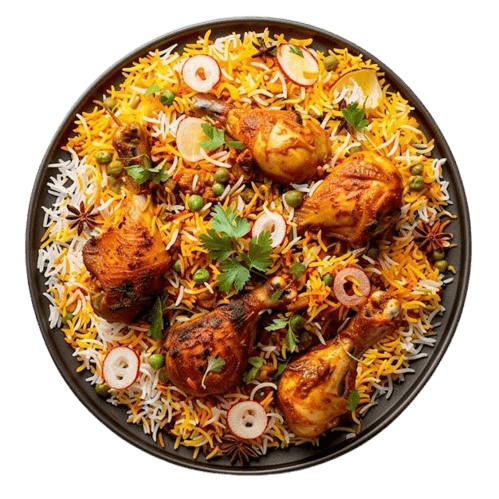 Dum Biryani is a flavorful rice dish slow-cooked with spices and meat or vegetables in a sealed pot.