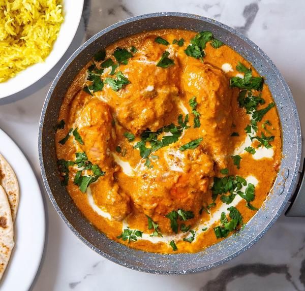 Bone-in chicken cooked in buttery tomato gravy with smooth creamy finish.