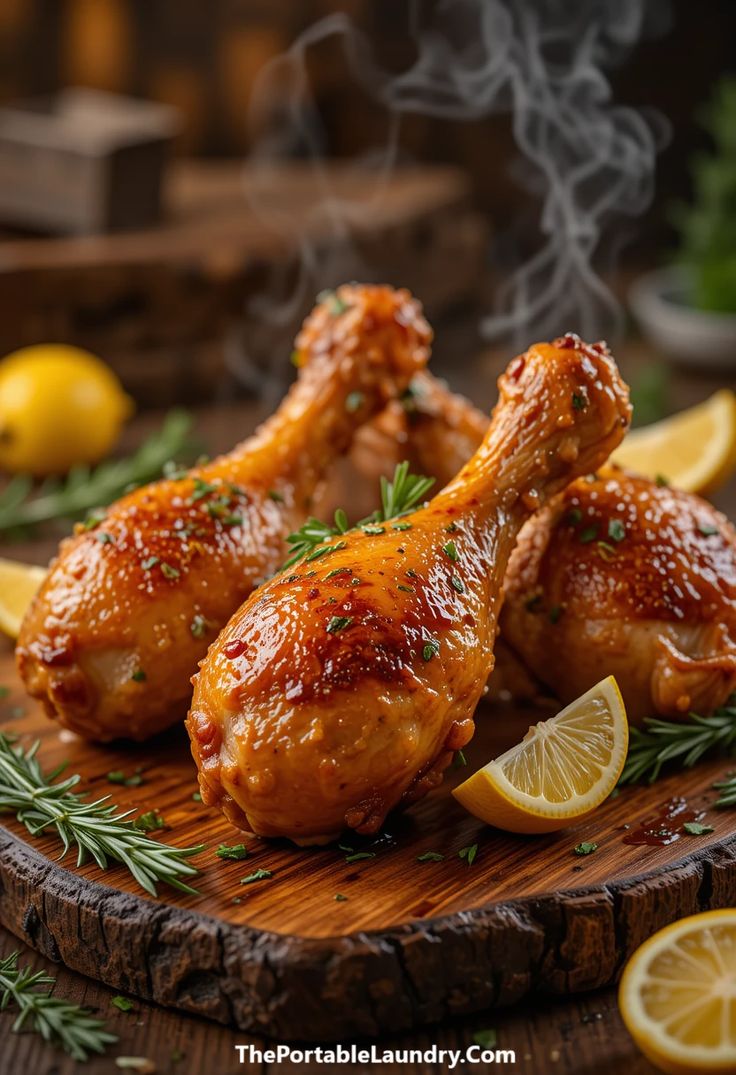 Green herb coated chicken leg roasted for a refreshing and flavorful taste.