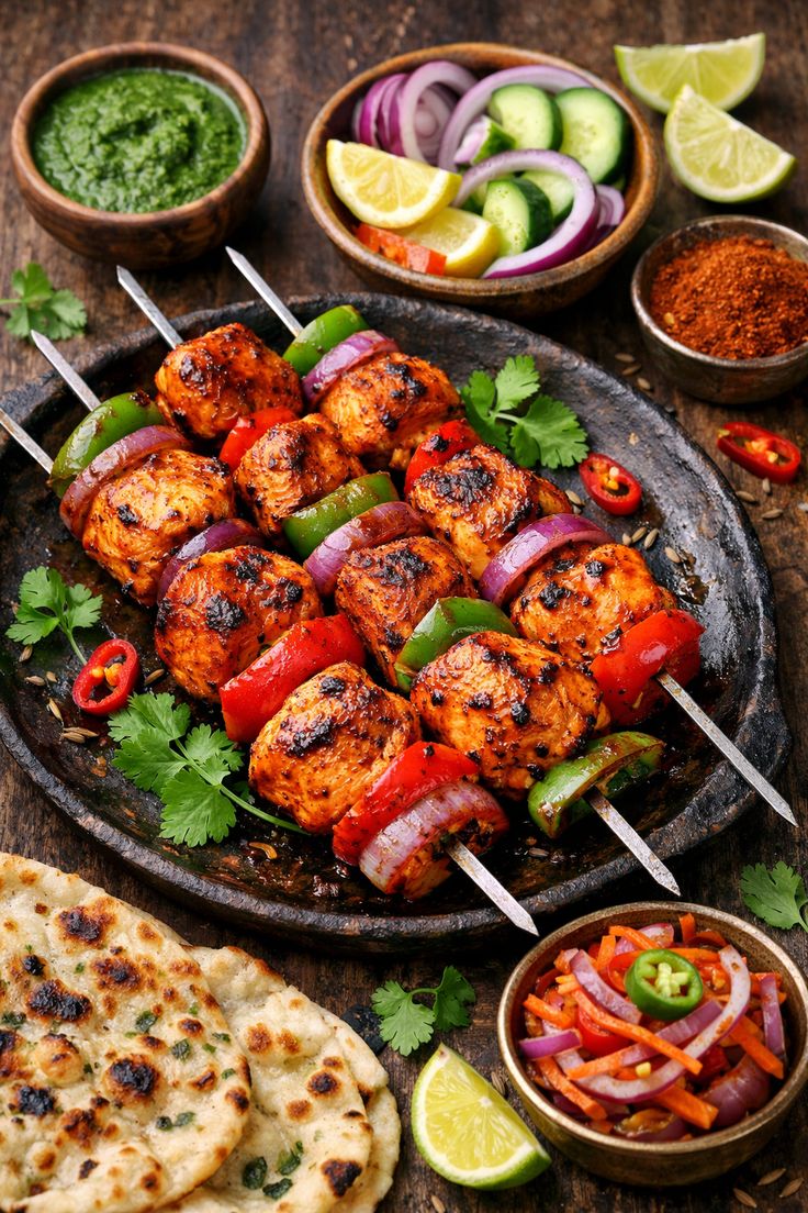 Fresh green herb marinated chicken tikka grilled for a refreshing and aromatic taste.