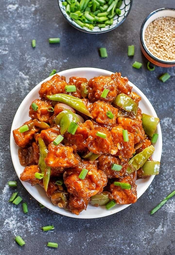 Soft paneer cubes cooked with capsicum, onion, and spicy chilli sauce.