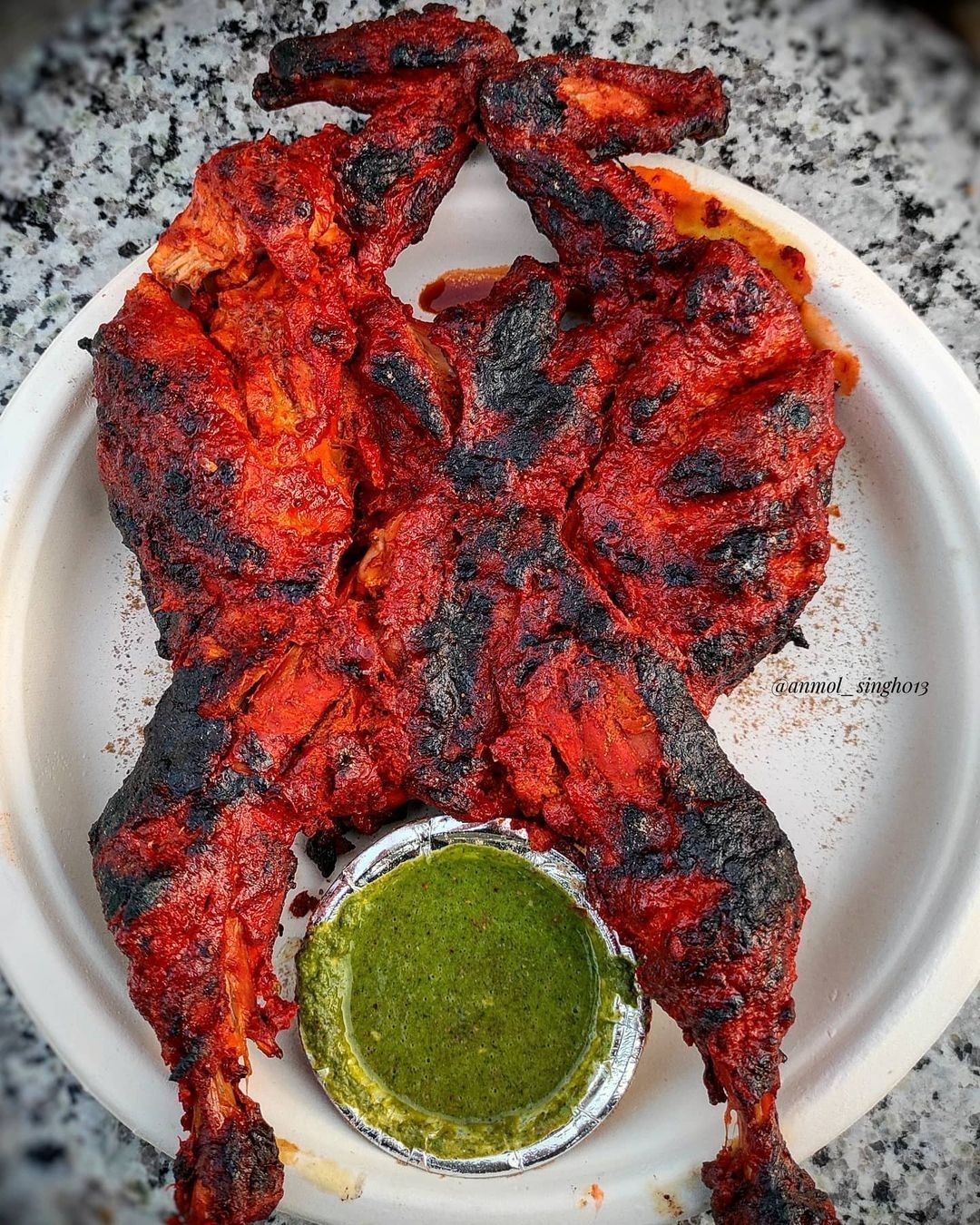 Traditional tandoori chicken marinated in authentic spices and roasted in a tandoor for smoky flavor and juicy texture.